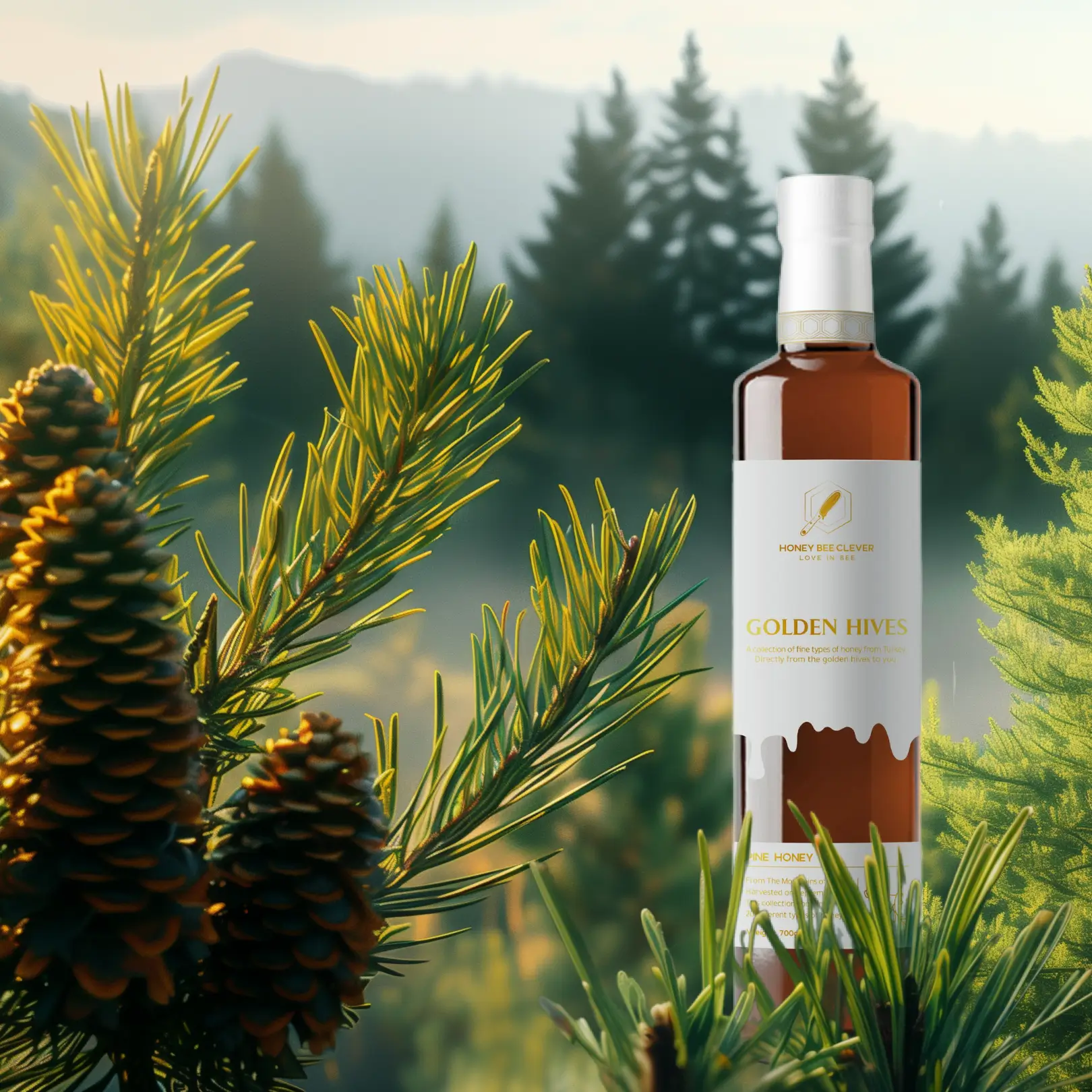 Pine honey is a type of honey produced by bees that collect nectar from pine trees. It has a dark amber color, a rich aroma, and a unique flavor profile that combines sweetness with a hint of pine.